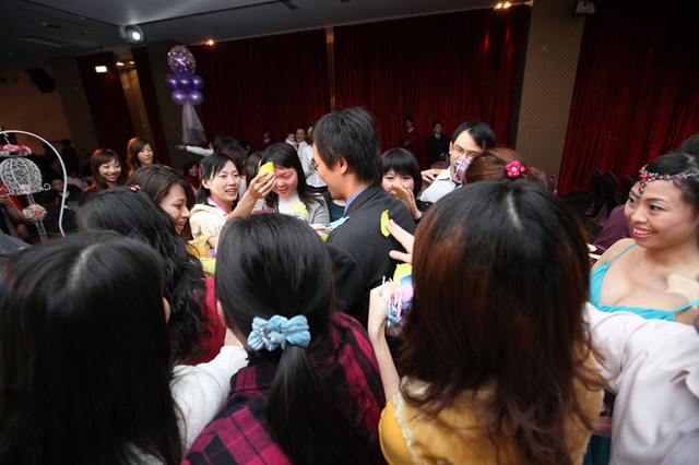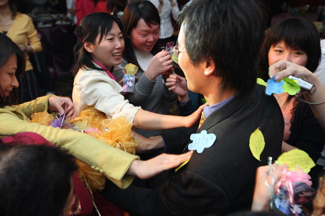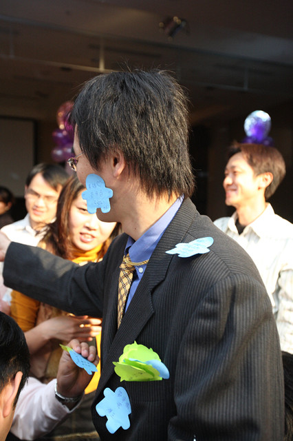 每個人除了搶果醬~還努力的把便利貼祝福貼在老公身上~