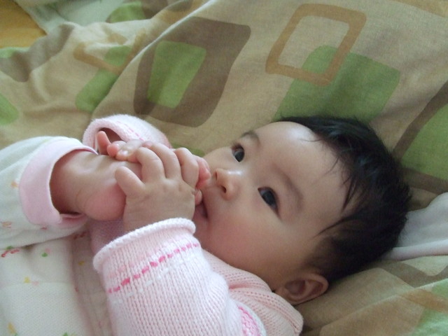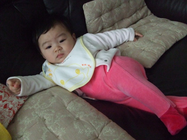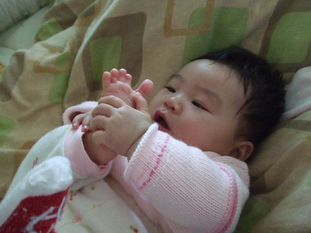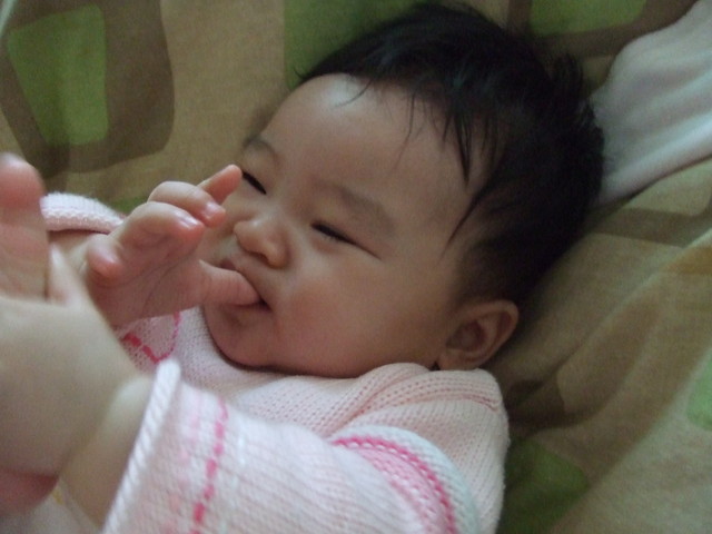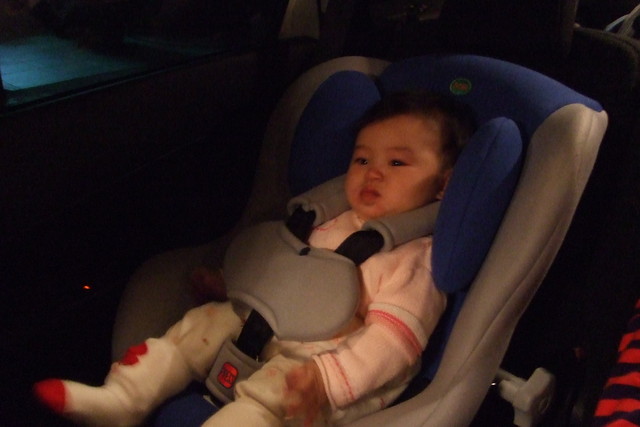 然後一上高速公路我就唱歌給她聽~很快就睡著啦!!