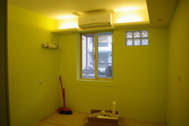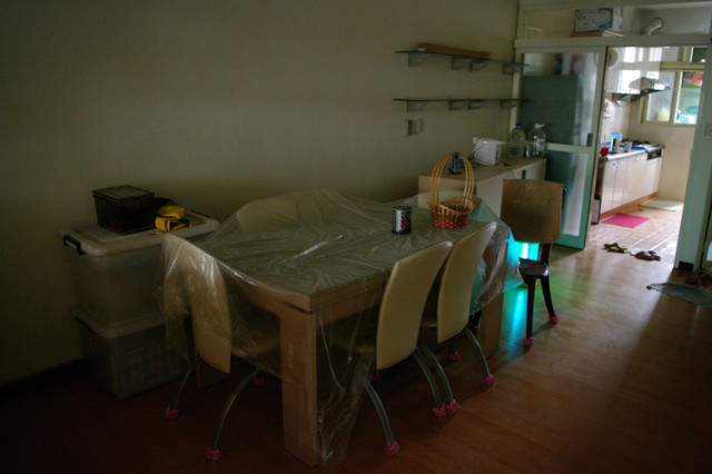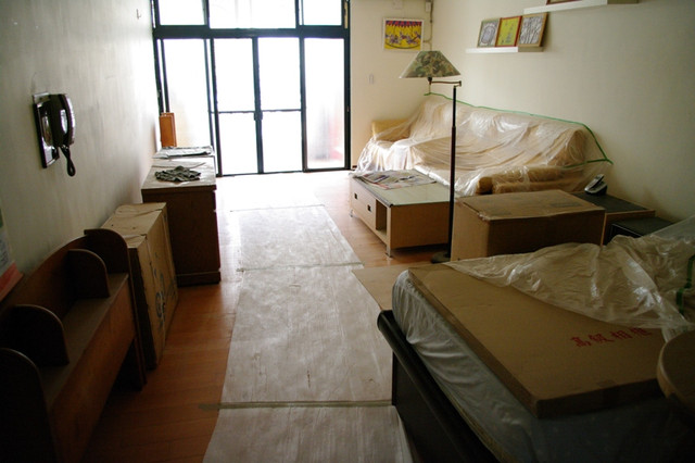 為了施工~家裡大部分家具都用"養護膠帶"覆蓋著~