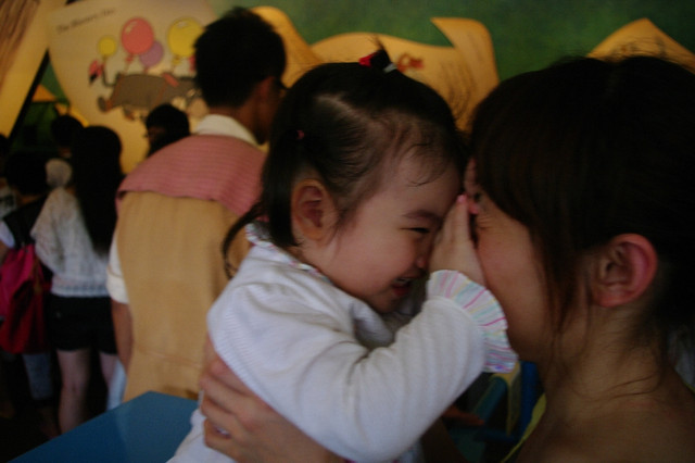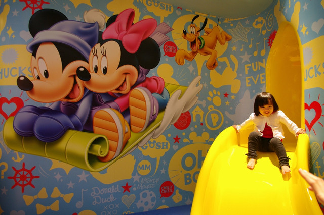 繼續不斷吵著要玩迪士尼商店的溜滑梯