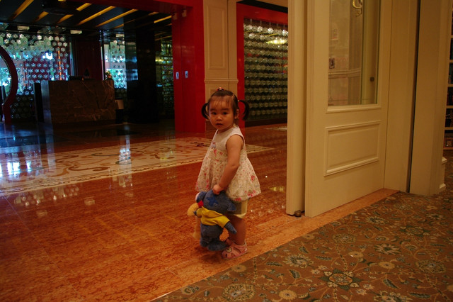 讓我們帶了一堆行李+東西和小孩窩在富麗堂皇的大廳中