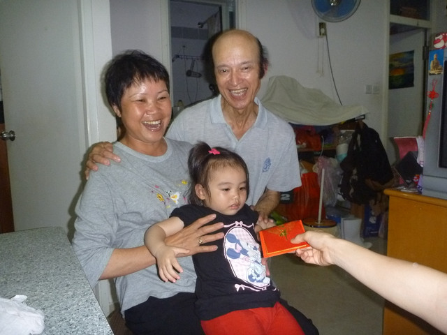 趕緊鞠躬做揖跟爺爺奶奶恭喜恭喜~逗的兩位哈哈笑~