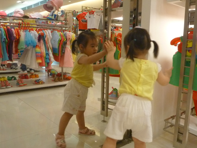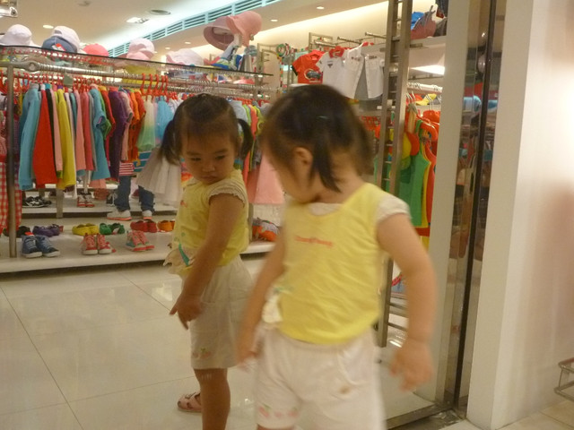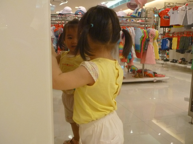 結果小蘋果自己還會在鏡子前照照自己、擺POSE!!