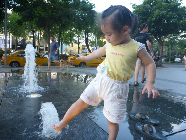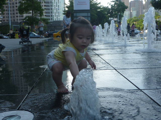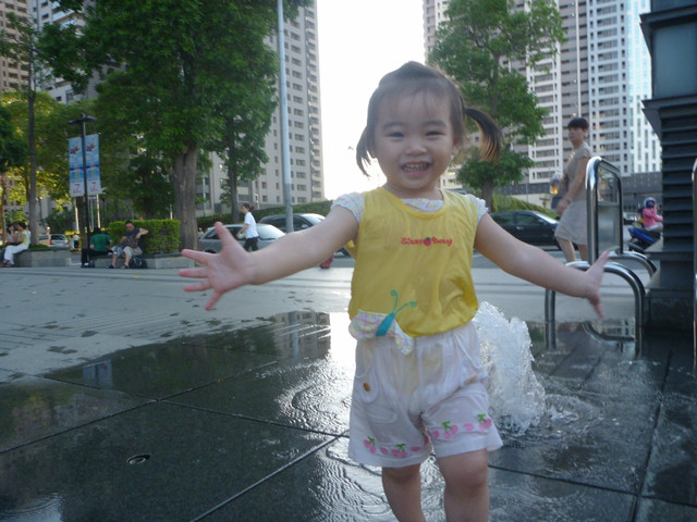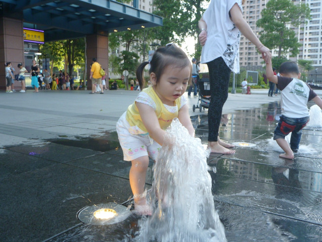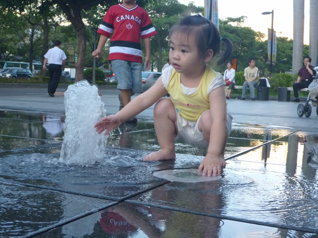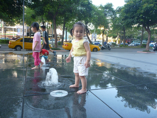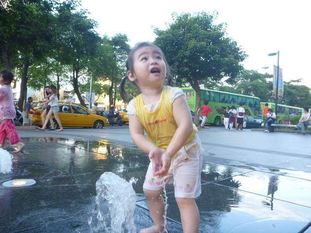 後來把比帶小蘋果到新光三越門前噴水池玩耍~