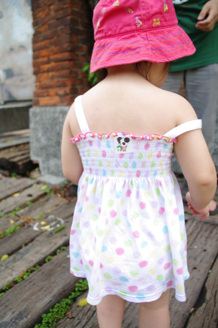 小蘋果右腳的防蚊腳環和背後的防蚊貼紙是跟布丁妹麻買的
