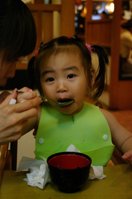小蘋果就會比較注意湯匙送進嘴巴時尾部要拿高一點了