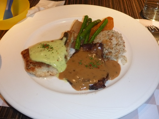 我點的是香草牛排+嫩煎?魚~餐點名字忘了~
