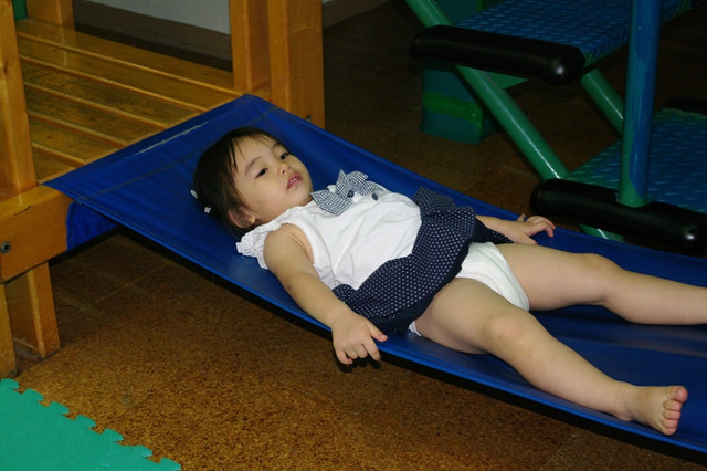 明明是塑膠布橋小蘋果硬是要當搖搖床睡