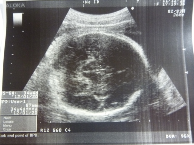 這是測量小貝果的頭圍~腦部也正常~