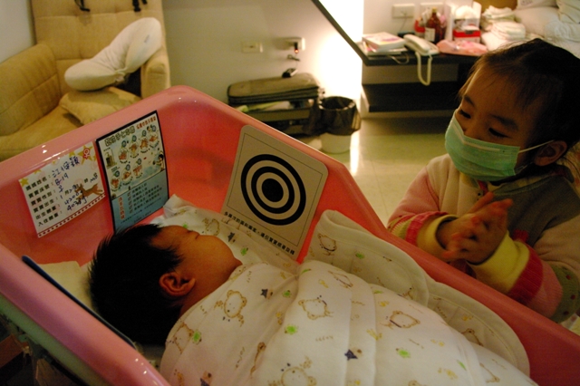 一下子又問"媽咪~為什麼妹妹的臉紅紅的?!"