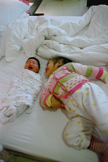 所以月子中心的人也總算通融讓她們共處一室!!