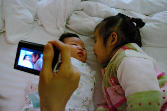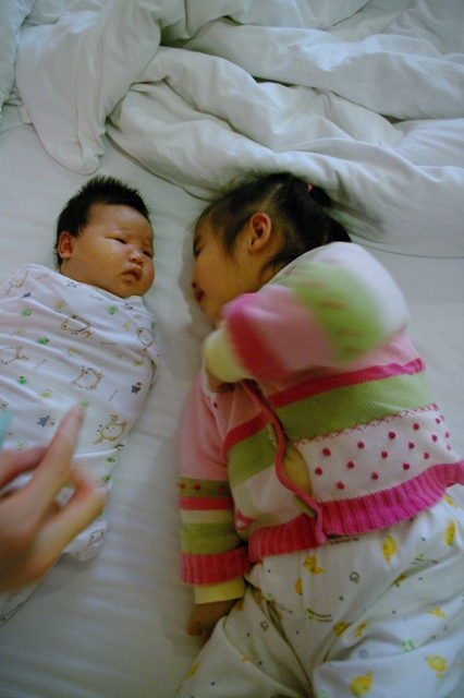 小蘋果很滿意有這個妹妹~一直看著她~