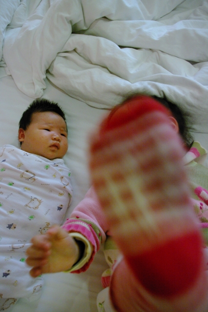 22天大的小貝果和兩歲半的小蘋果~