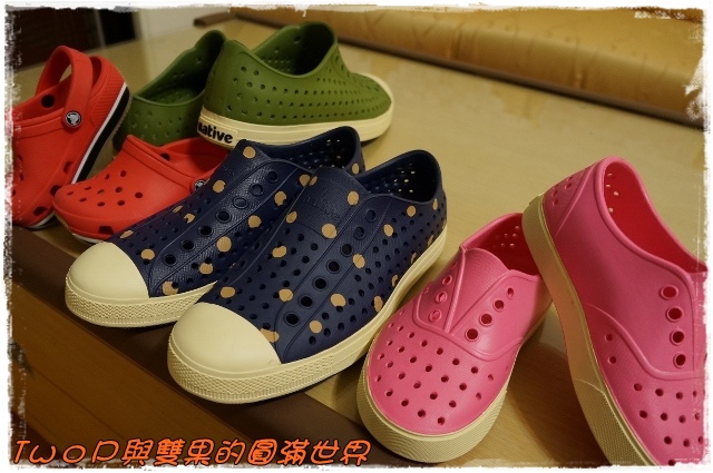 為了這行程~雙果拔特地去買了Native+Crocs當作親子鞋~