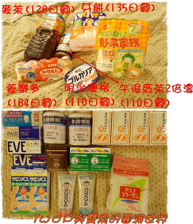 除了牙膏兩條和明治膠原蛋白粉外~其他都是朋友交代要買的啦!!