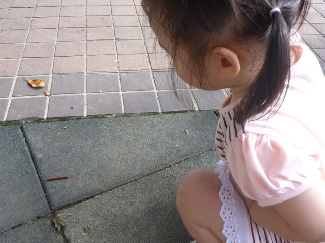 剛開始小蘋果實在不敢走~