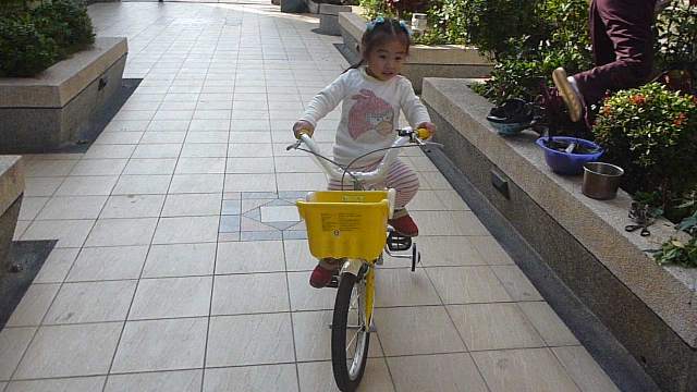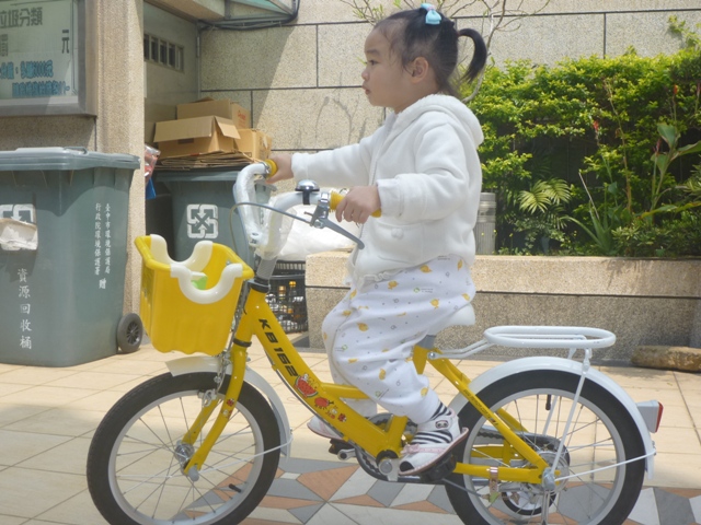 不過還不會騎的她還沒體會到騎腳踏車的樂趣~