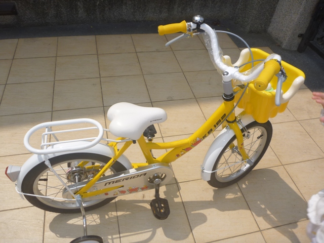有空和好天氣就帶她到庭院裡慢慢教她騎車的技巧~
