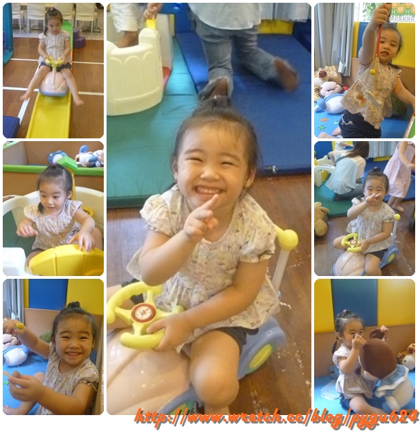 很少看她跟人搶玩具~整場就是拖著一隻長頸鹿玩偶趴趴走~真妙!!