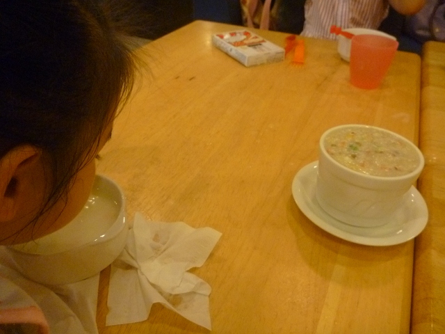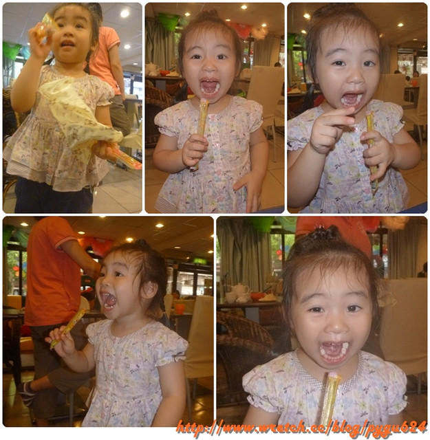 可能玩餓了~再加上被小姊姊說"不吃完會被雷公彈舌頭"!!