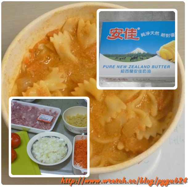我還跟綾麻(jackla39)學撇步~也做了蝴蝶義大利番茄肉醬麵給她吃~
