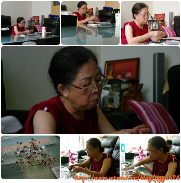 難得再回阿嬤家~~阿嬤很用心的做小手鍊給雙果~~