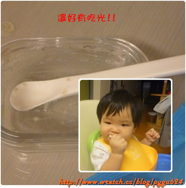 給她湯匙~可以轉移注意力~呼~但有吃完~