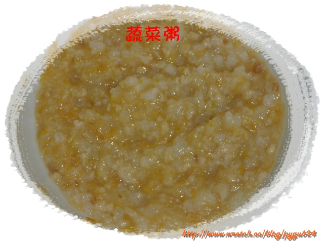 粥已經煮的軟爛不打泥~蔬菜全打成泥混在一起~