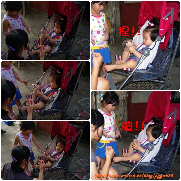 吹給小貝果看!!!小貝果則是盯的目不轉睛!!倒是小蘋果手等不及要來搶!!