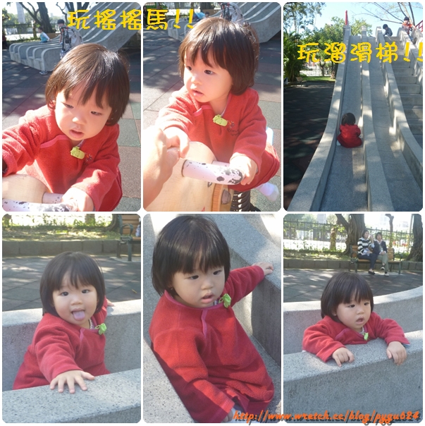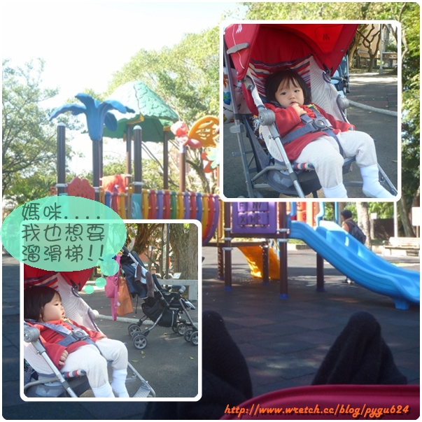 一玩就玩上癮囉!!一把她抱離開溜滑梯她就會哇哇叫!!!