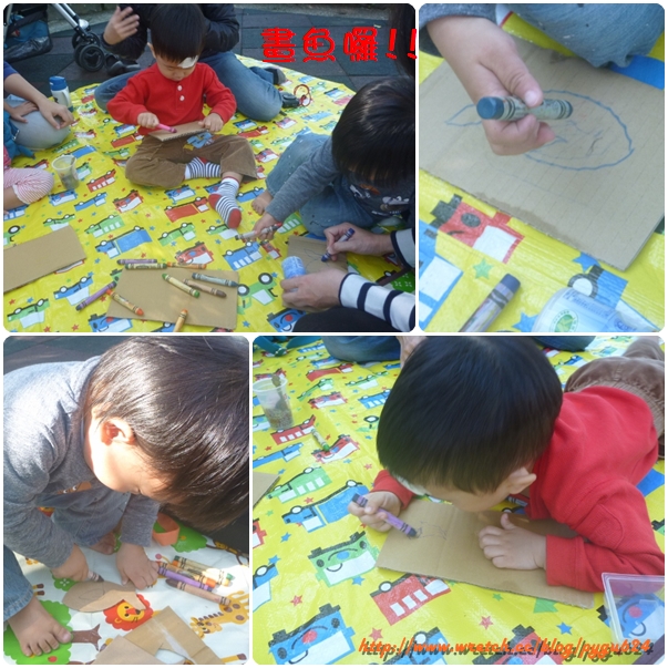 我準備了厚紙板讓他們自由發揮畫小魚!!