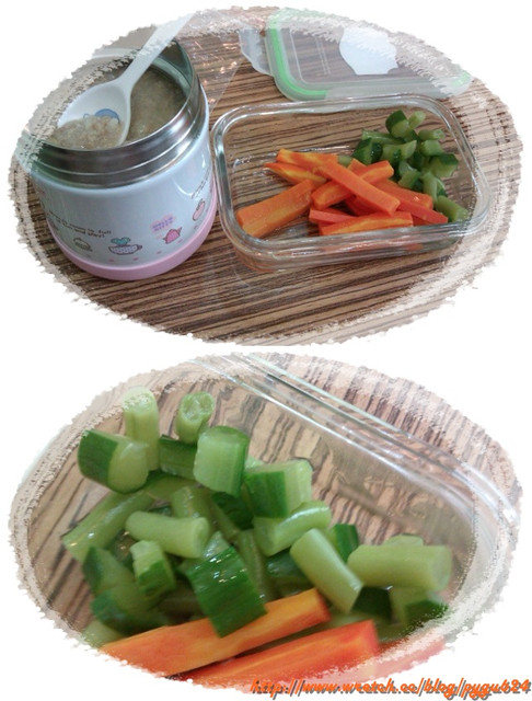 明天再來讓她試牛肉~今天吃粥的狀況都還OK~全部完食~有嗯嗯沒過敏!!