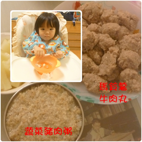所以午餐是牛肉丸+紅糖饅頭~但都吃不多~只好母奶擋一下囉!!