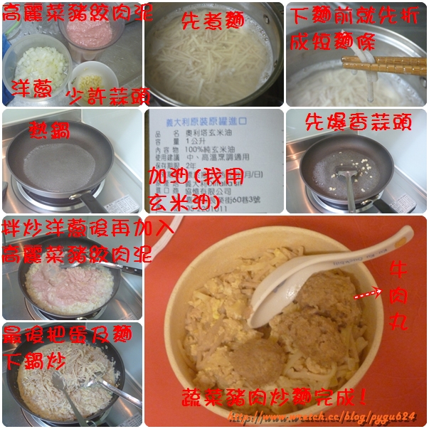4.爆香蒜頭後+洋蔥拌炒一會~之後再加入高麗菜豬肉泥~