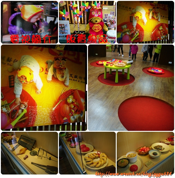 館內的布置~有電視介紹收涎抓周過程~有商品販賣區!還有各種禮俗用物的陳列!