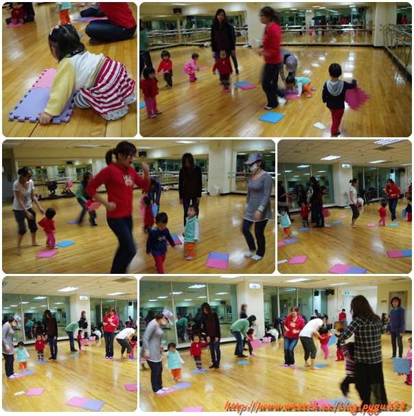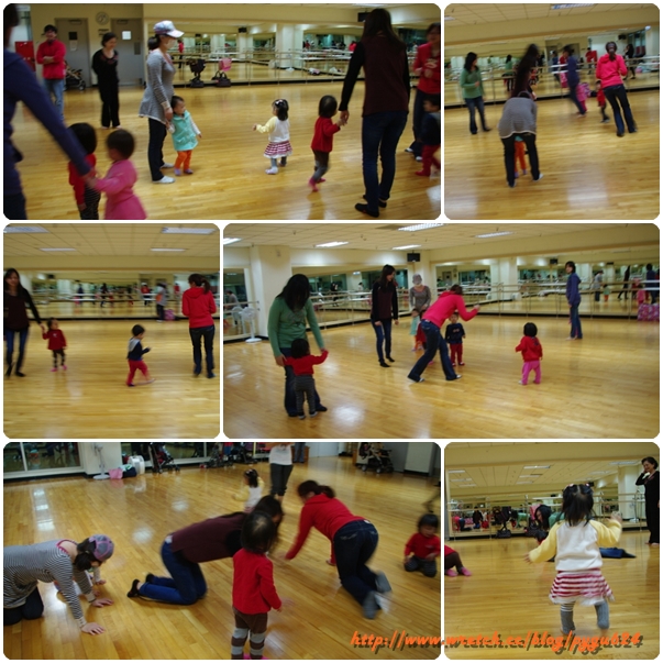 然後跟著老師的音樂跑跑跳跳爬爬~好熱鬧!!