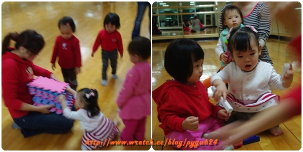 老師開始帶hello歌~結果小貝果玩遠遠的~