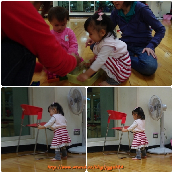 又去翻老師的百寶袋~還想玩別的媽咪的手機~又跑去玩椅子~