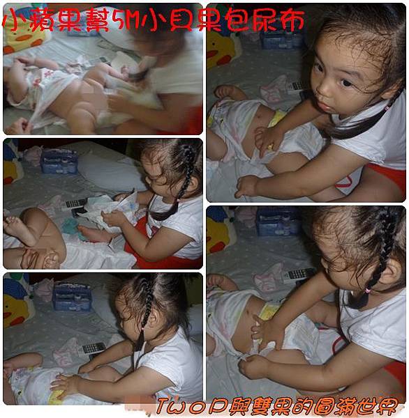 所以~~等妹妹大了一點~我就讓她幫妹妹包尿布~