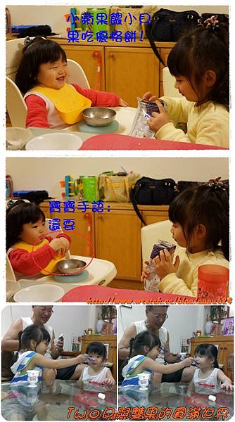 「小貝果還不像妳這麼厲害很多事可以自己完成~所以暫時需要爸比媽咪的幫忙~等妹妹像妳一樣長大了~她也會跟妳一樣自己完成喔!!」