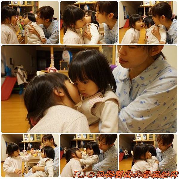 兩姊妹的睡前儀式~互道晚安~互相親親和抱抱~~