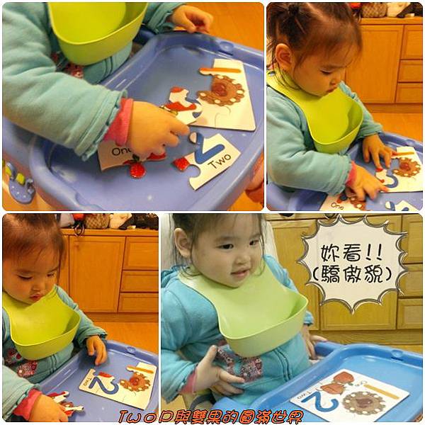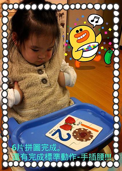 還有另外一件大事~~哈~就小貝果可以自己完成6片拼圖了~~
