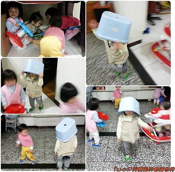 在保母家同伴很多~~玩的花招也很多~椅子當帽子!!!