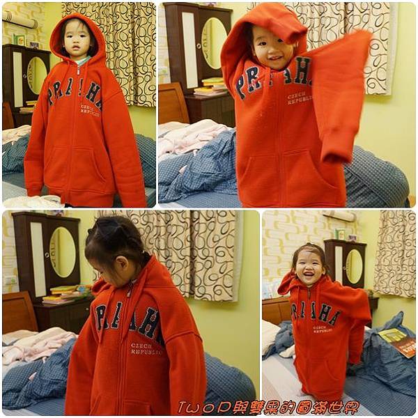 穿了外套~常常要自己拉拉鍊~有時候成功有時候失敗~