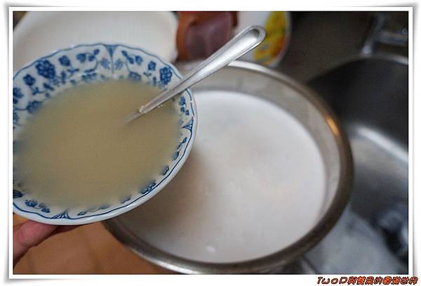 @過濾過的花生漿+泡水的洋菜粉一起煮~記得要不停攪動~不然會像煮豆漿一樣沾鍋喔!!