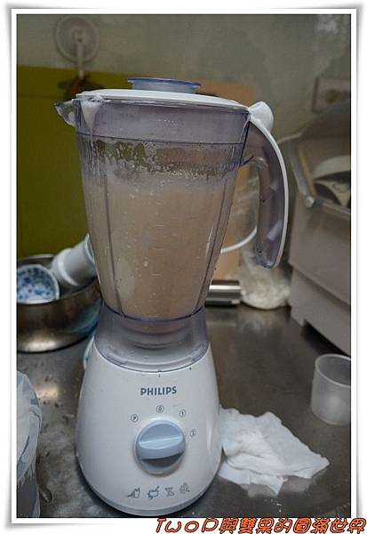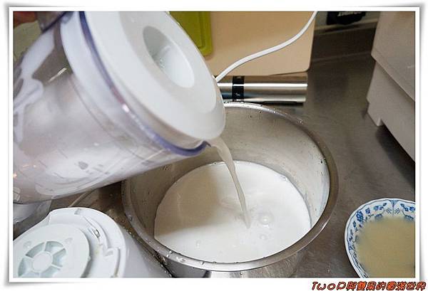 @用黃豆:水=1:4左右的比例~打成生豆漿!!