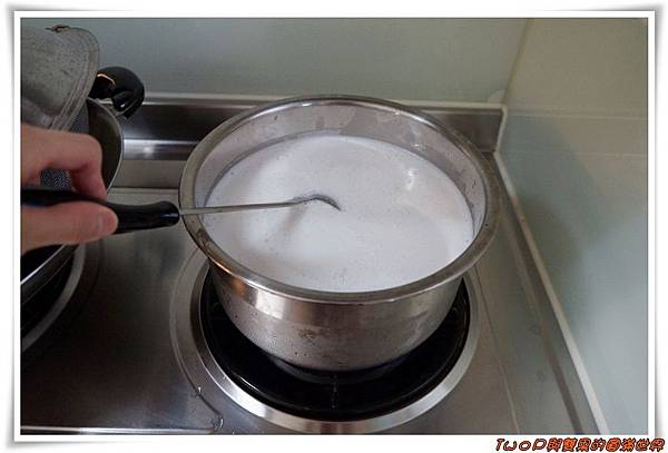 所以我就小鍋放大鍋=多放一個鍋子預防萬一豆漿真的ㄆㄨ出來~還有"擋頭"~