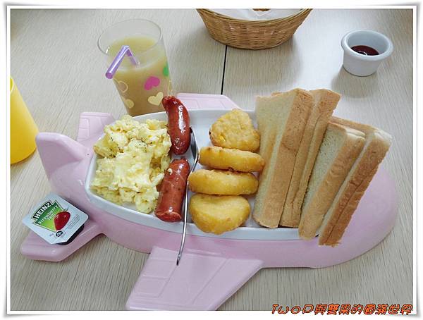 雙果因為九點才吃過早餐~~我只幫她們點了一份兒童餐~~