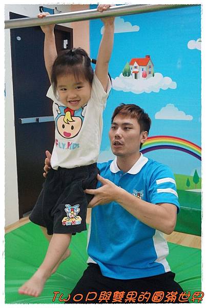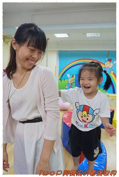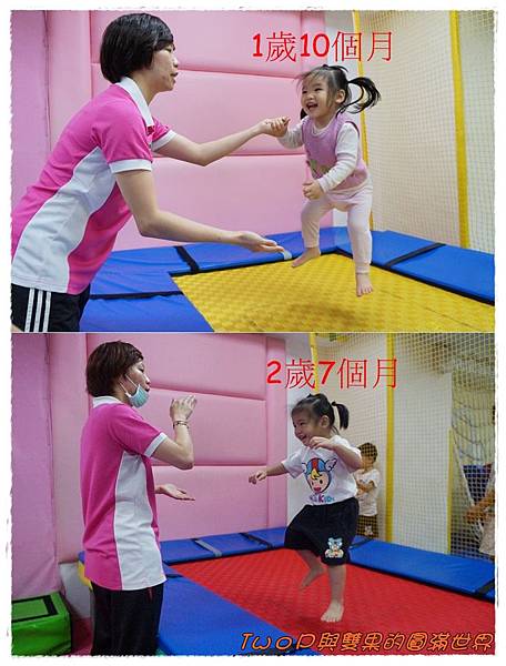 還記得小貝果剛上課時跳彈簧床還需要王老師在旁協助~~