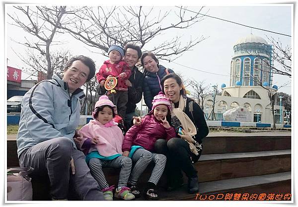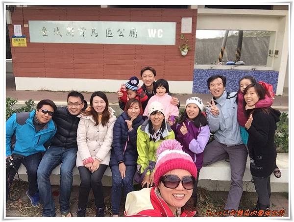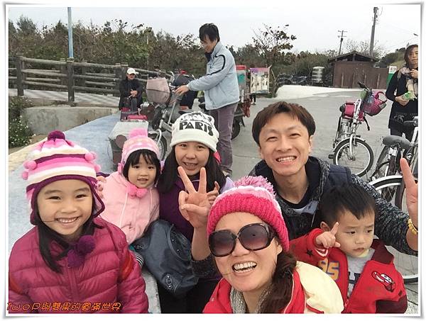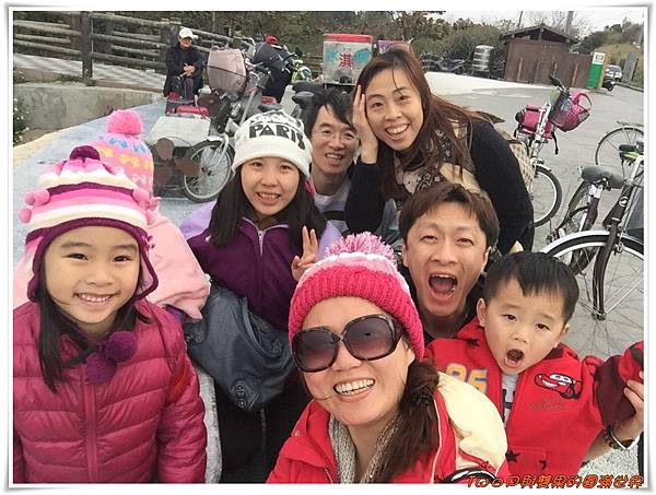 風好大喔!!只好戴上醜醜的帽子拍全家福~